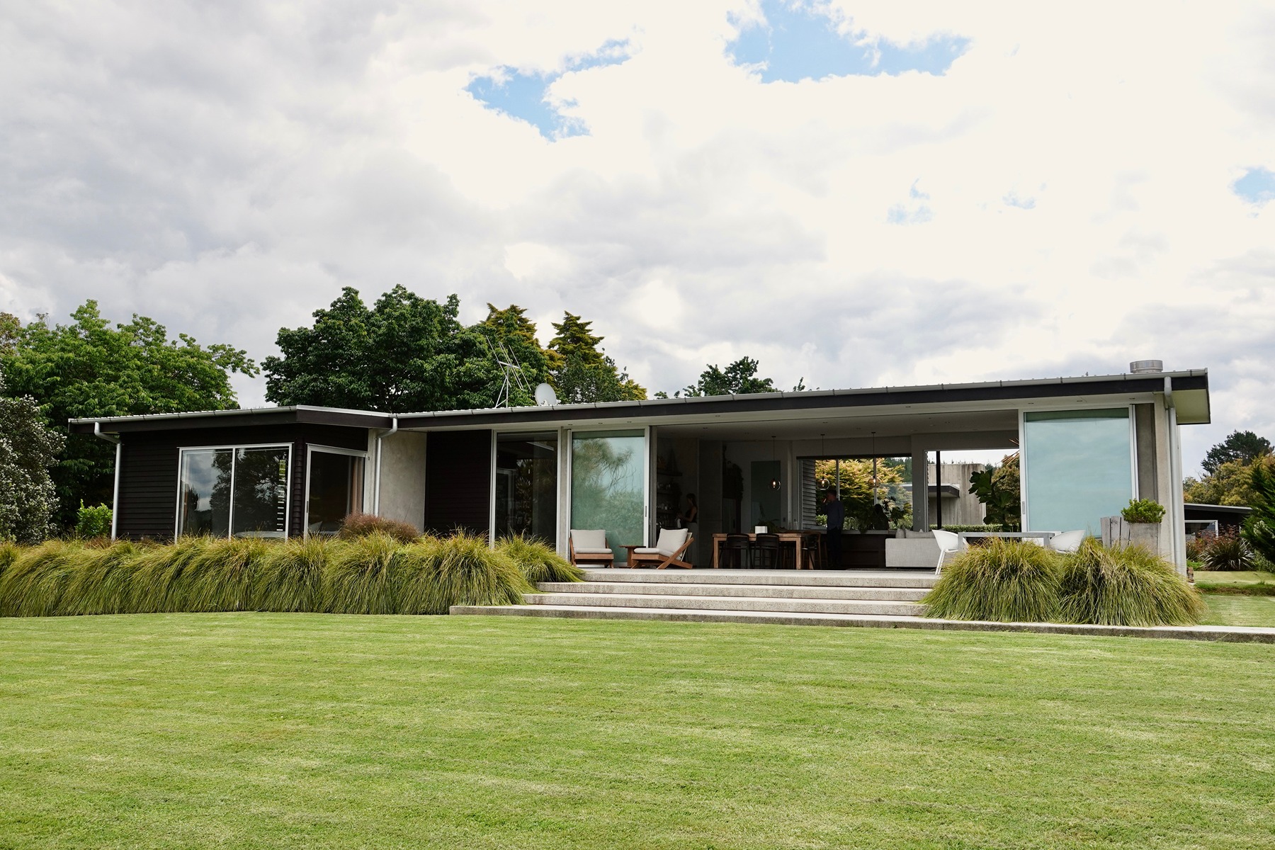 Sitting long and low across the Whangamata harbour with a backdrop of dense pine forestry, this robust and strong home of precast concrete panels and blackened cedar is at one with the landscape.