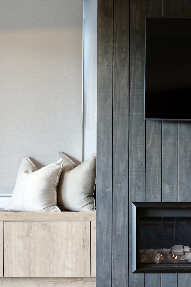 The complimenting dark timber exteriors & ocean blue joinery combine with natural concrete to stunning effect.
