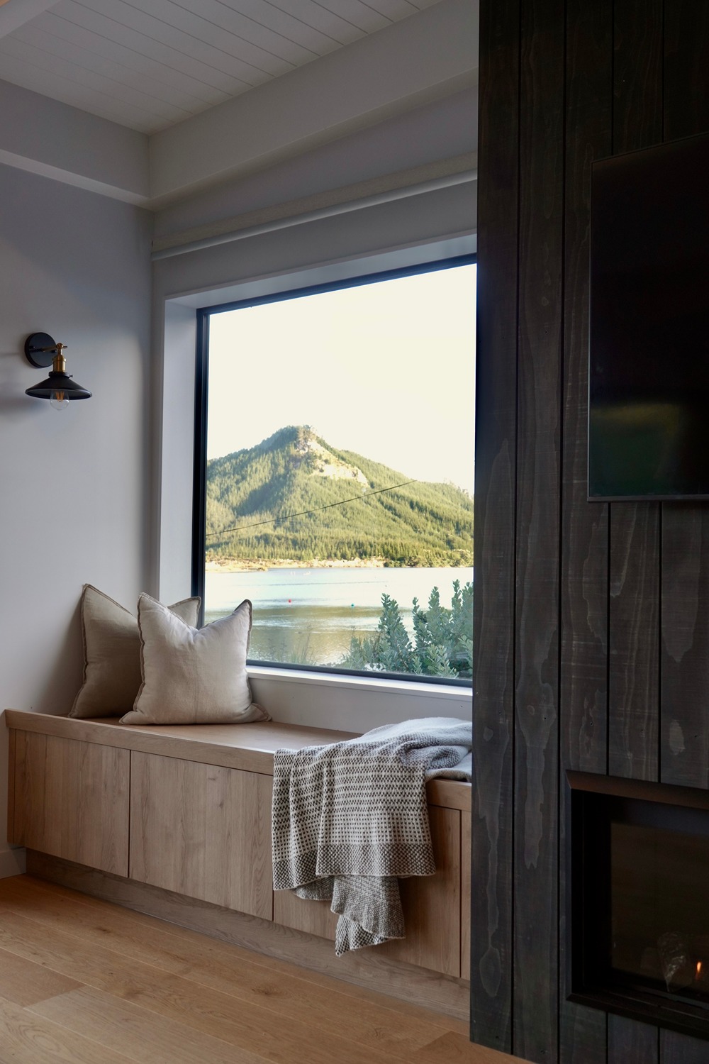 A complete glass frontage connects seamlessly to a spacious outdoor entertaining deck with large sliding windows positioned along the house sides further enhancing the connection to the harbour scape.