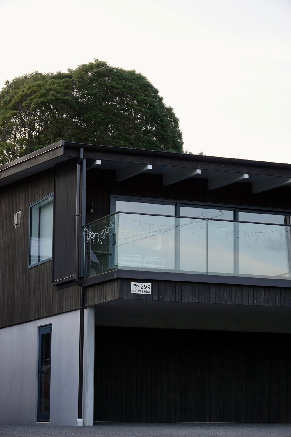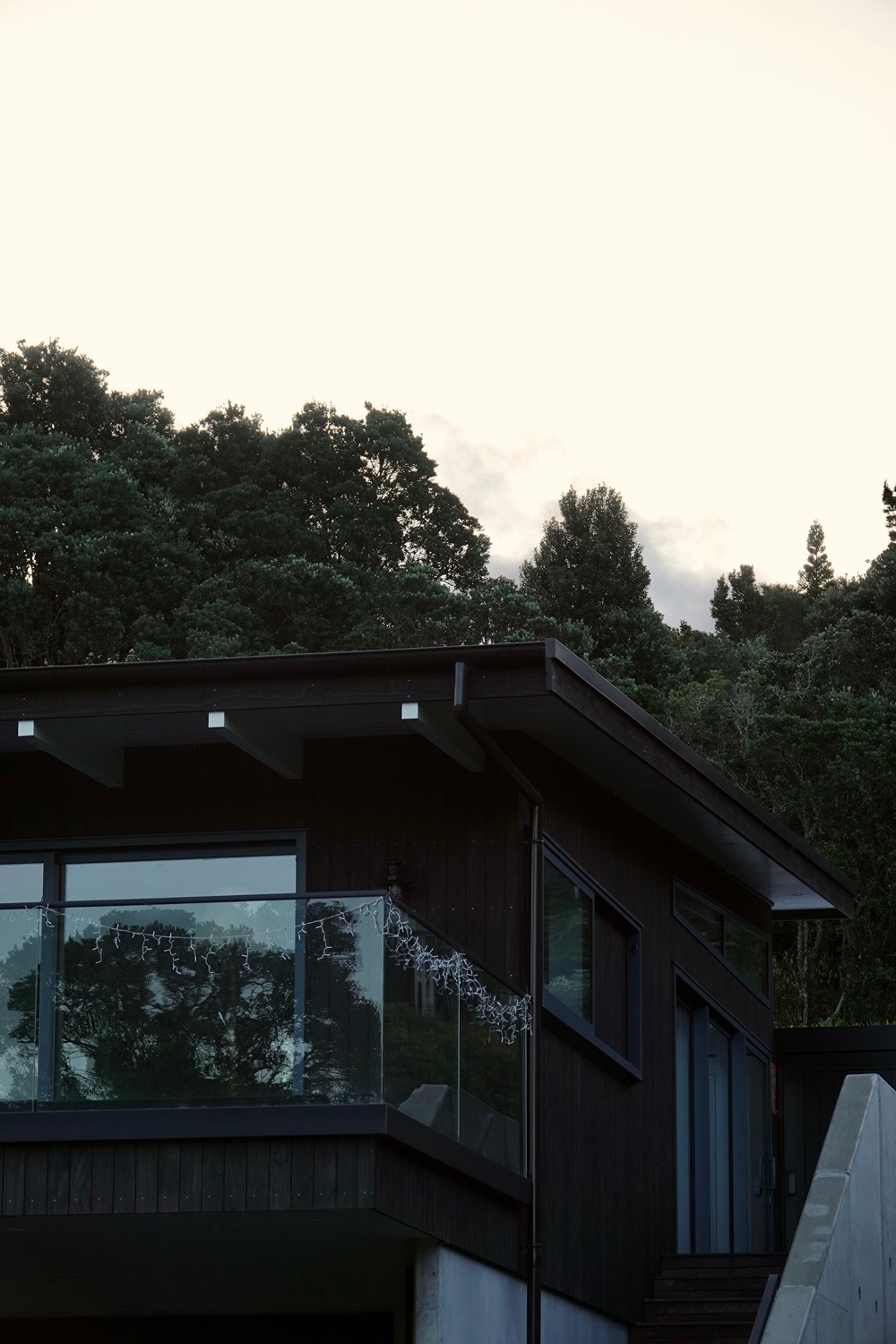 Understated & timeless this long low design rests against the natural green backdrop following the lands natural contour angling towards the Opoutere harbour edge.